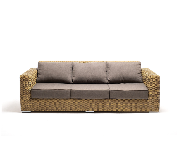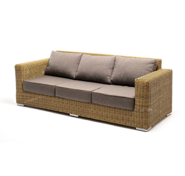 В комплекте с трехместным диваном идут мягкие подушки для комфортного расположения. Чехлы съёмные серого цвета из высококлассного полиэстера с плотностью 300гр/м2. Защитные свойства ткани усиливаются при помощи влагоотталкивающей пропитки.