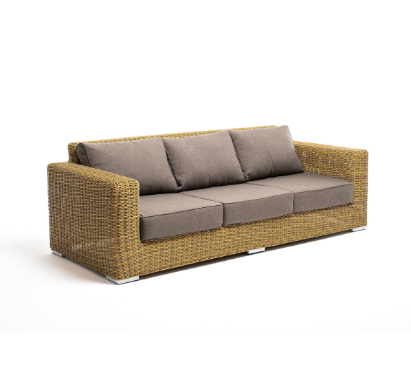 Диван «Боно» подходит для размещения сразу трех персон. Его основа из прочного алюминиевого каркаса. Размер модели – 2300×900×775 мм, толщина подушки: 150 мм, вес: 45 кг.