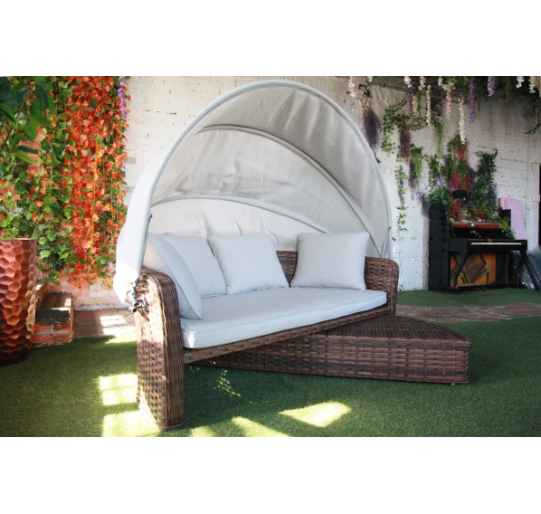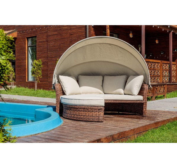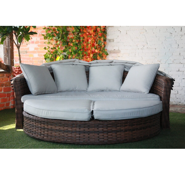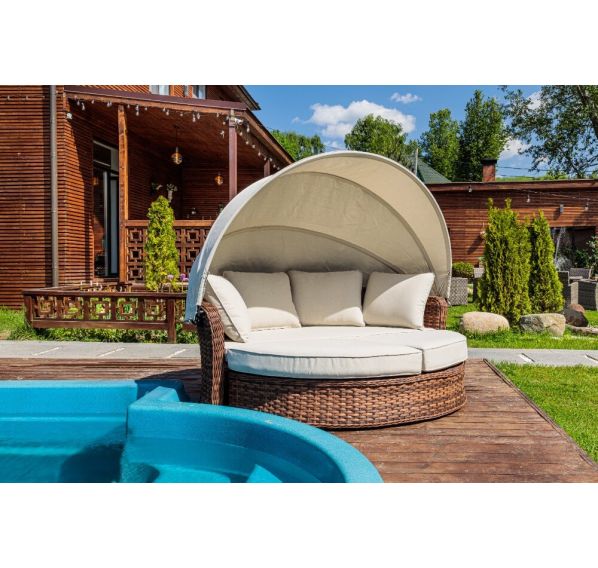 Удобный круглый шезлонг-трансформер Violetta можно легко трансформировать из круглой кровати в компактный и стильный диван, убирая переднюю часть под основную , а солнцезащитный козырек из ткани позволит Вам наслаждаться свежим воздухом даже под палящим солнцем.