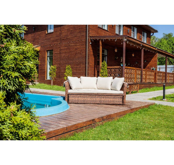 Диван-трансформер Violetta из искусственного ротанга коричневого цвета — отличное местом для комфортного отдыха Вас и Вашей семьи под открытым небом.