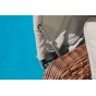 При его изготовлении мы использовали прочный алюминиевый каркас с декоративной отделкой из круглого и плоского искусственного ротанга, что обеспечило улучшение технологический характеристик.