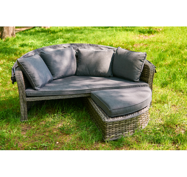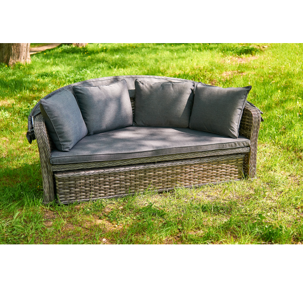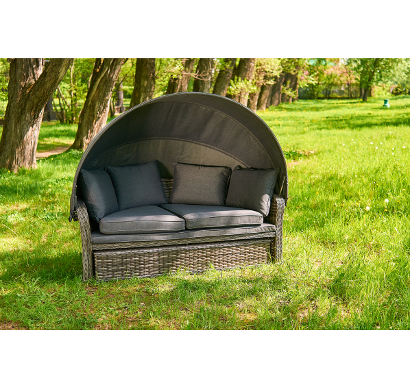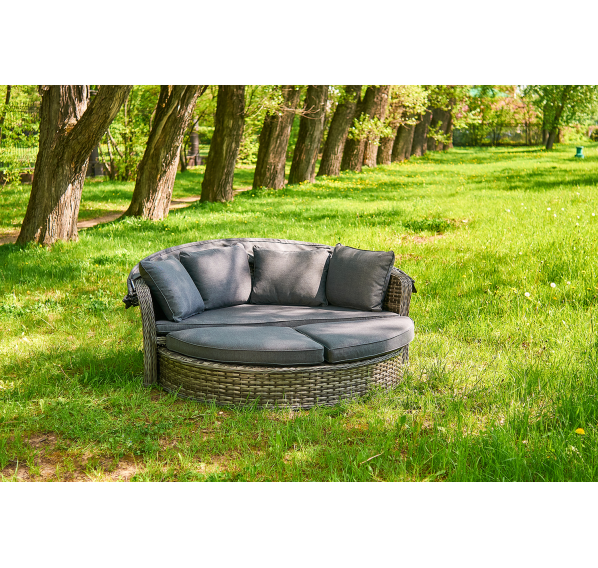Удобный круглый шезлонг-трансформер Violetta можно легко трансформировать из круглой кровати в компактный и стильный диван, убирая переднюю часть под основную , а солнцезащитный козырек из ткани позволит Вам наслаждаться свежим воздухом даже под палящим солнцем.