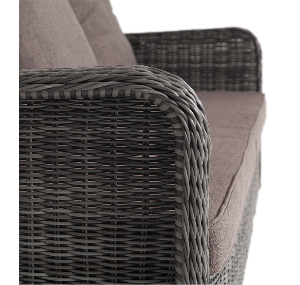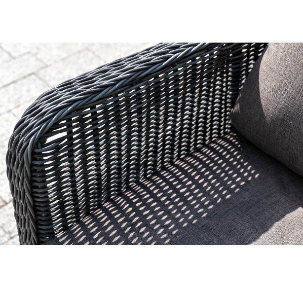 Ручное круглое плетение является основным декоративным элементом мебели. Оно выполнено из искусственного ротанга в цвете графит.