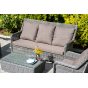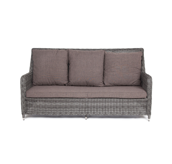 В комплекте с трехместным диваном идут мягкие подушки для комфортного расположения. Чехлы съёмные серого цвета из высококлассного полиэстера с плотностью 300гр/м2. Защитные свойства ткани усиливаются при помощи влагоотталкивающей пропитки.