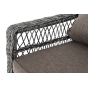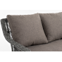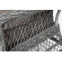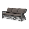 Модель выполнена с помощью ручного круглого плетения из искусственного ротанга. Трехместный диван представлен в графитовом цвете.