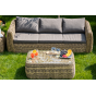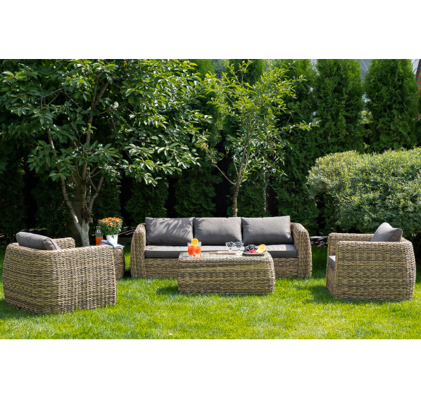 Ручное круглое плетение является основным декоративным элементом мебели. Оно выполнено из искусственного ротанга вида «гиацинт» в соломенном цвете.