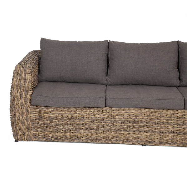 Диван «Кальяри» подходит для размещения сразу трех персон. Его основа из прочного алюминиевого каркаса. Размер модели – 2125×880×680 мм, толщина подушки: 80 мм, вес: 34 кг.