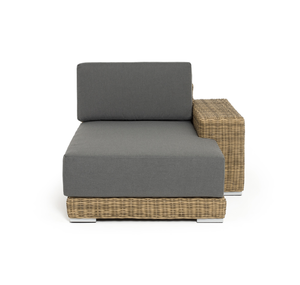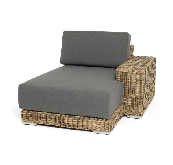 Кушетку можно использовать не только как самостоятельный элемент, но и быть частью лаунж-зоны, в которую данная модель превосходно интегрируется.