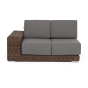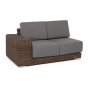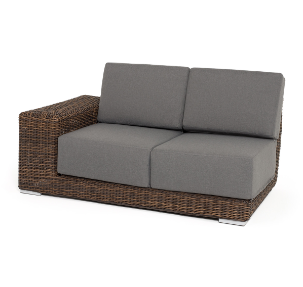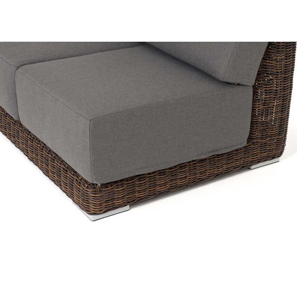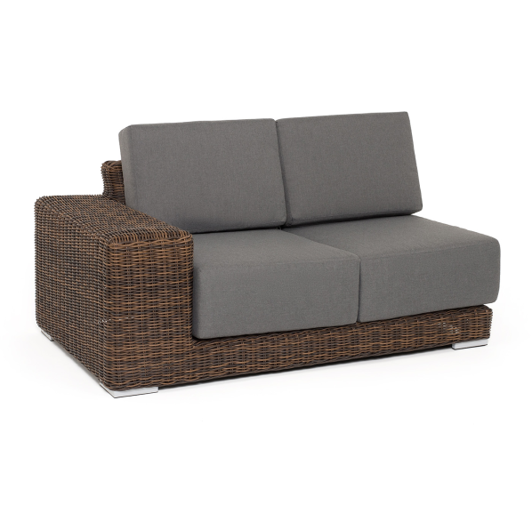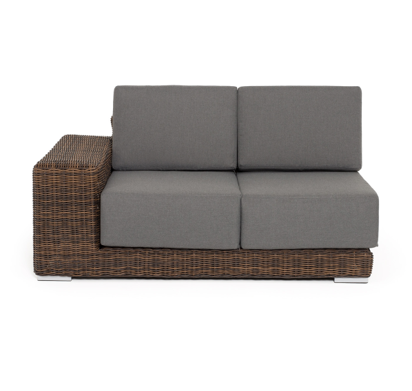 Правый модуль «Капри», выполненный из круглого искусственного ротанга коричневого оттенка, позволяет использовать не только как самостоятельный элемент, но и быть частью лаунж-зоны, в которую данная модель превосходно интегрируется.