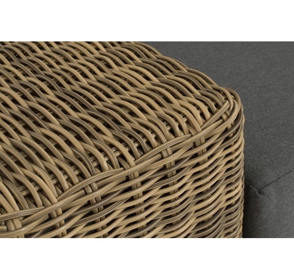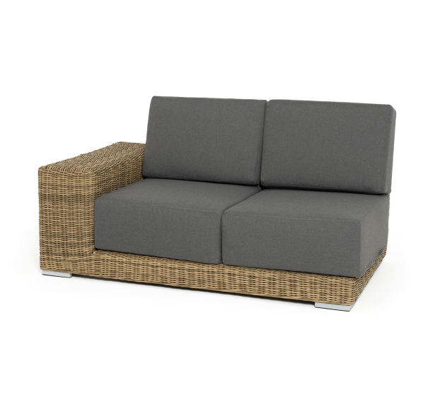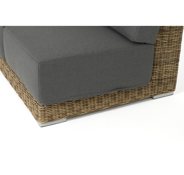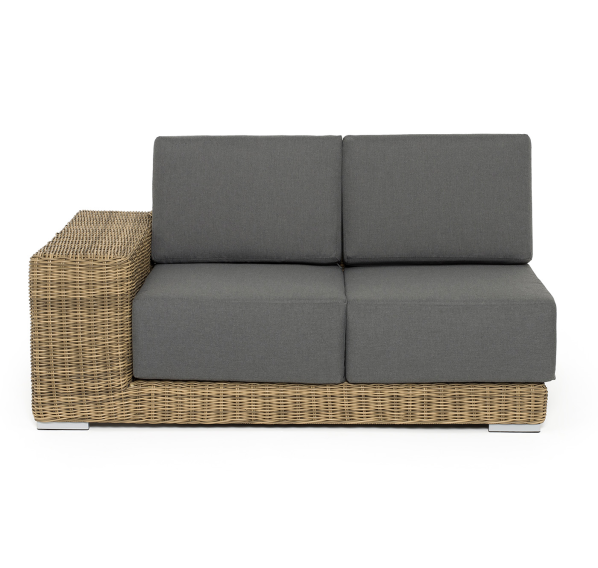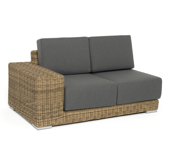 Правый модуль «Капри», выполненный из круглого искусственного ротанга соломенного оттенка, позволяет использовать не только как самостоятельный элемент, но и быть частью лаунж-зоны, в которую данная модель превосходно интегрируется.