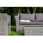 Диван выполнен из искусственного ротанга вида «гиацинт» серого цвета, оплетенного вручную.