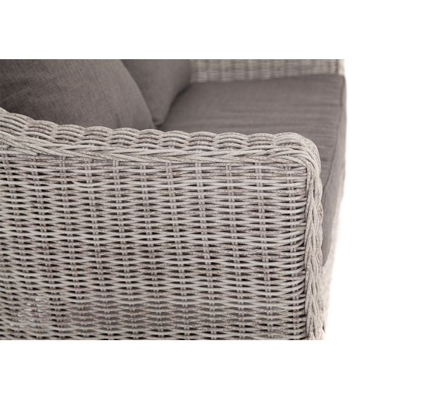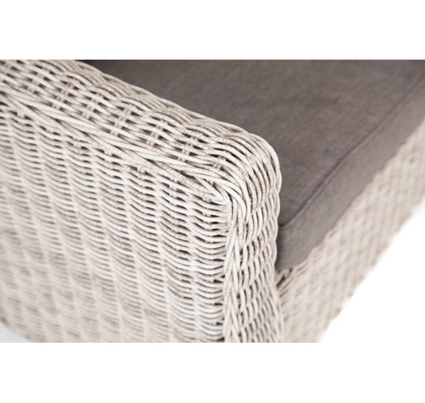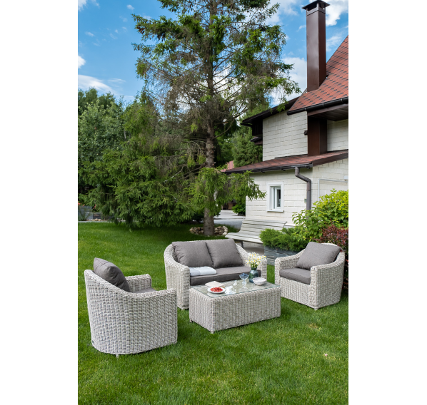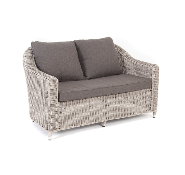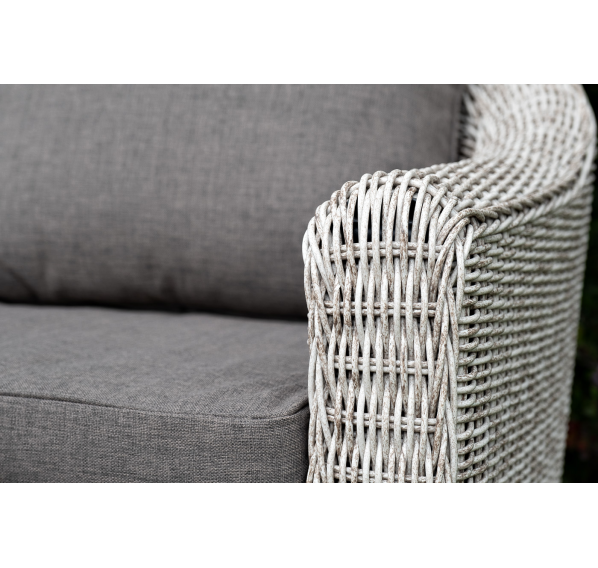 При производстве садового дивана был использован прочный алюминиевый каркас, который оплетен вручную круглым искусственным ротангом.