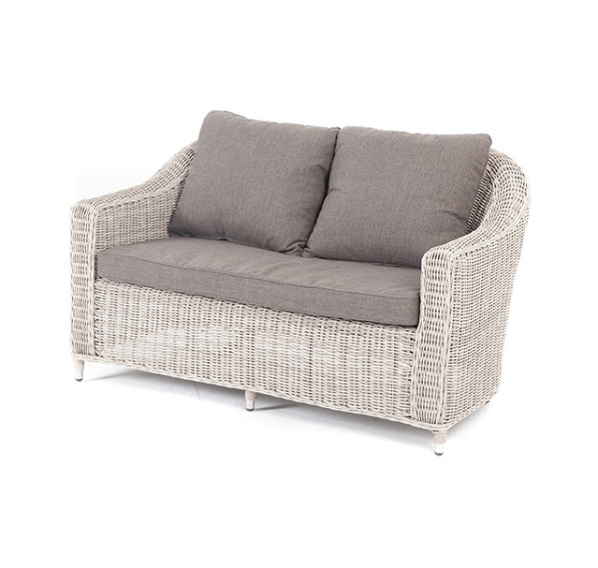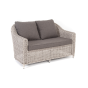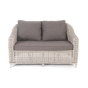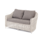 Диван из искусственного ротанга бежевого цвета «Кон Панна» дает возможность комфортно расположить две персоны благодаря комплектным подушкам из полиэстера с влагоотталкивающей пропиткой.