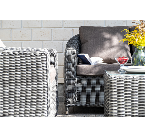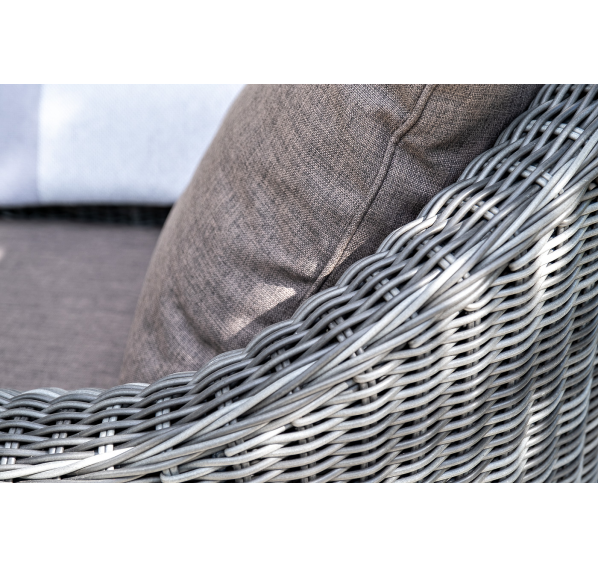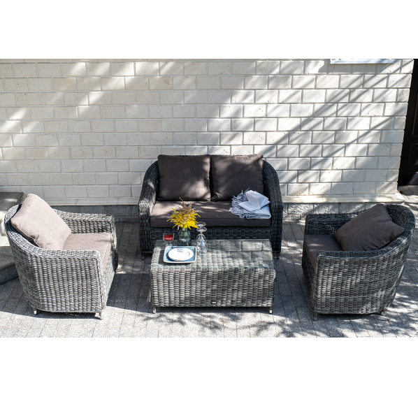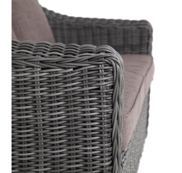 При производстве садового дивана был использован прочный алюминиевый каркас, который вручную оплетен круглым искусственным ротангом.