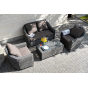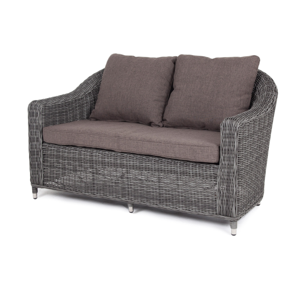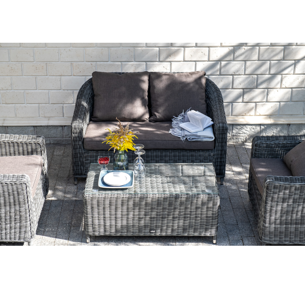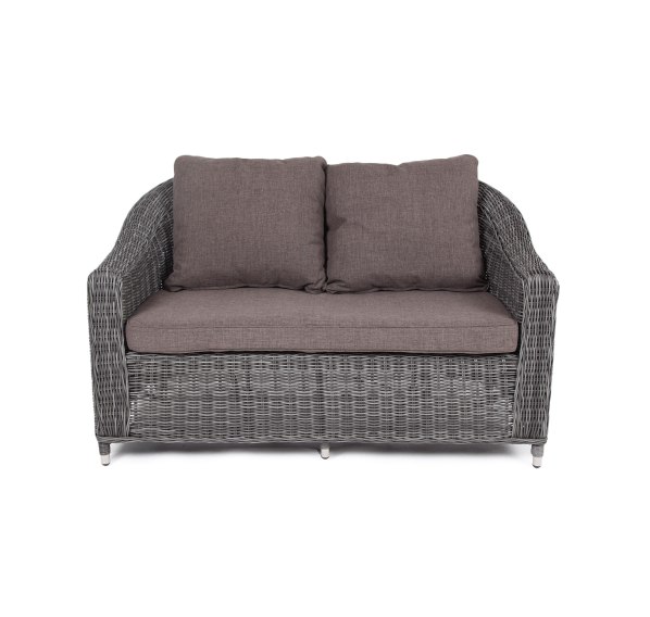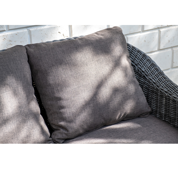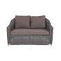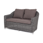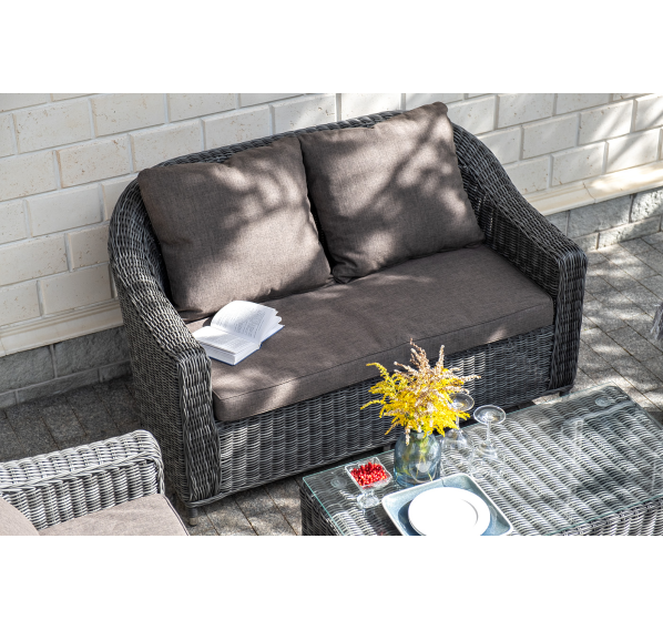 Диван из искусственного ротанга графитового цвета «Кон Панна» дает возможность комфортно расположить две персоны благодаря комплектным подушкам из полиэстера с влагоотталкивающей пропиткой.