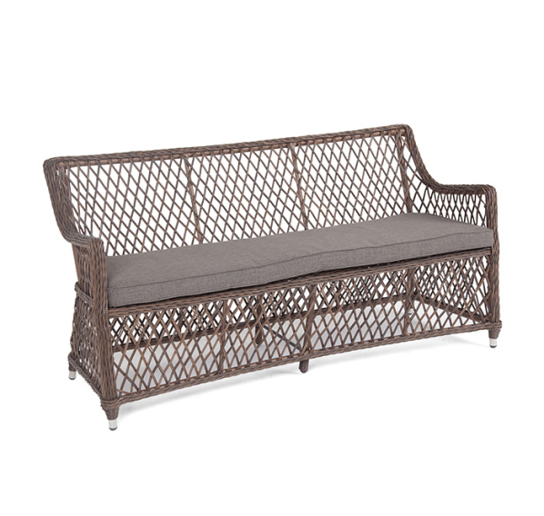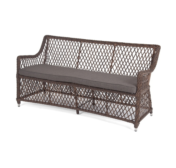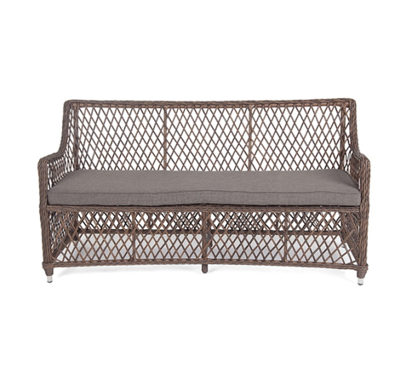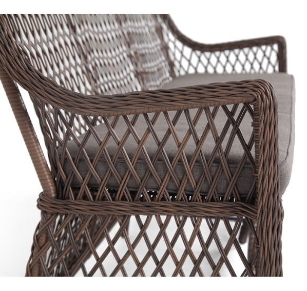 Мебель ручного плетения, которое выполнено из круглого искусственного ротанга. Представлена в коричневом цвете.