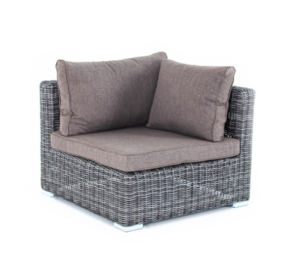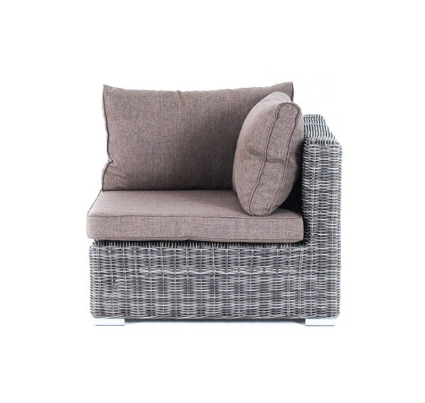 Угловой модуль из круглого искусственного ротанга «Лунго» является одним из звеньев для создания лаунж зоны по индивидуальным потребностям.