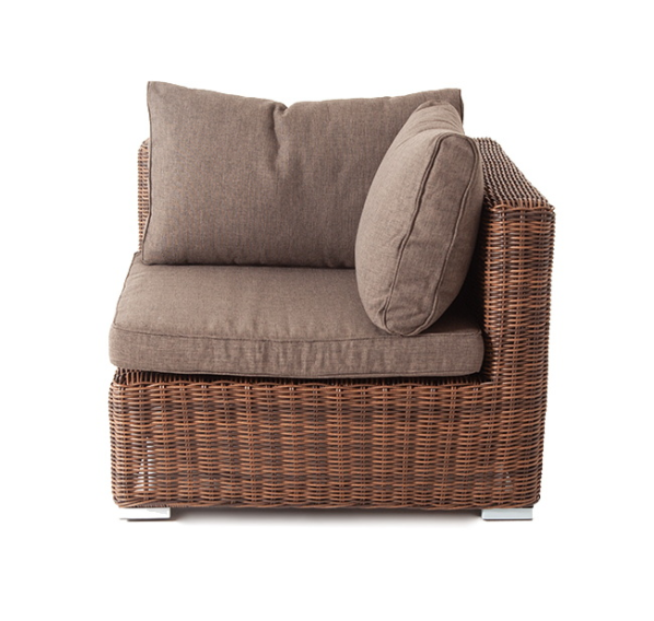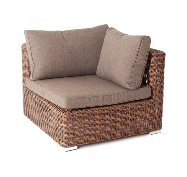 Угловой модуль из круглого искусственного ротанга «Лунго» является одним из звеньев для создания лаунж зоны по индивидуальным потребностям.