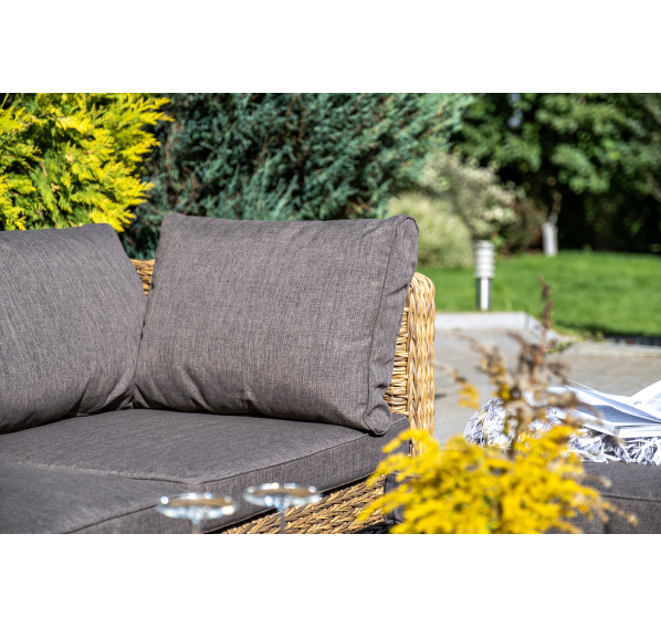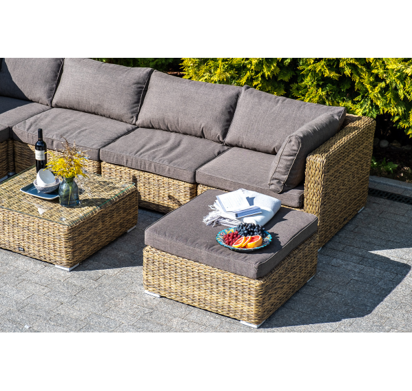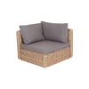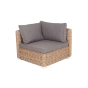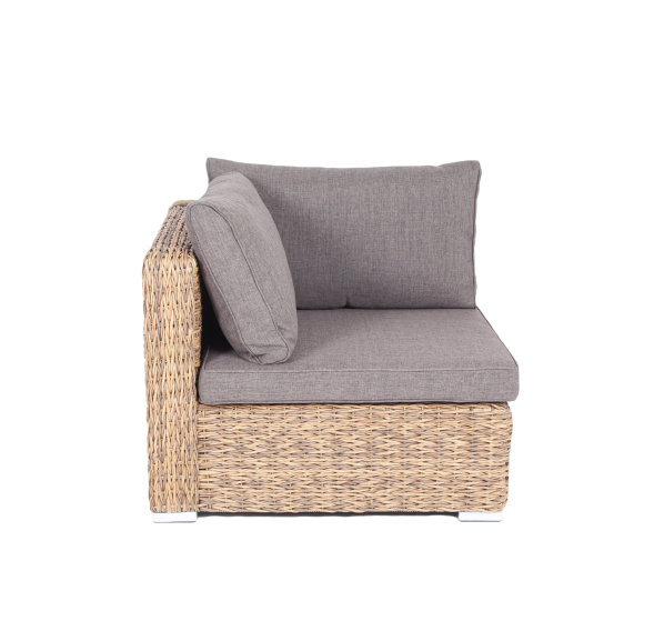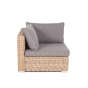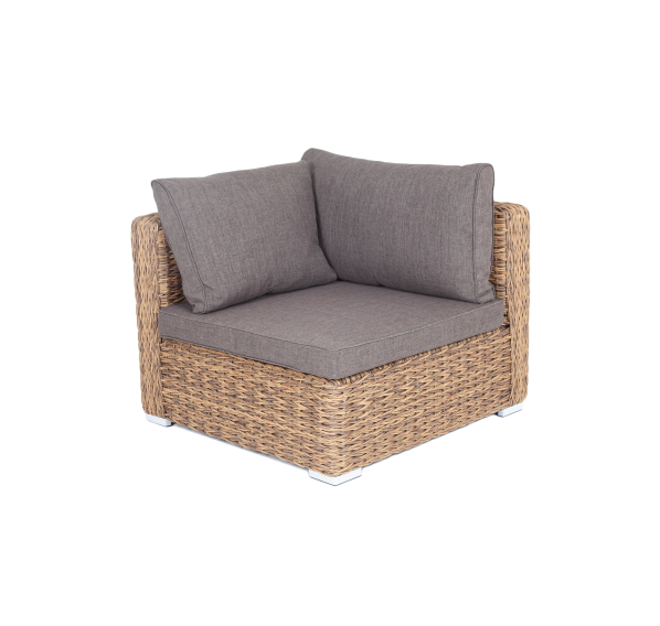 «Лунго» угловой модуль из искусственного ротанга вида «гиацинт», вляется неотъемлемой частью лаунж-зоны. В своем основании имеет каркас из алюминия, который вручную оплетен ротангом соломенного цвета.