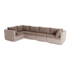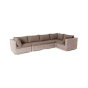 Модульный диван дополняют подушки со съёмными чехлами в сером оттенке. При их пошиве используется полиэстер, плотностью 300гр/м2. Ткань обрабатывается влагоотталкивающей пропиткой для усиления ее защитных качеств.
