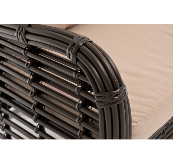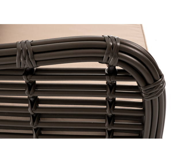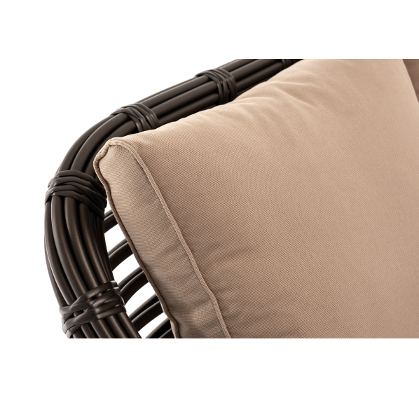 Ручное круглое плетение является основным декоративным элементом мебели. Оно выполнено из искусственного ротанга в соломенном цвете.