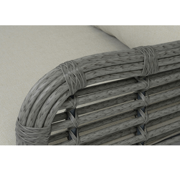 Ручное круглое плетение является основным декоративным элементом мебели. Оно выполнено из искусственного ротанга в сером цвете.