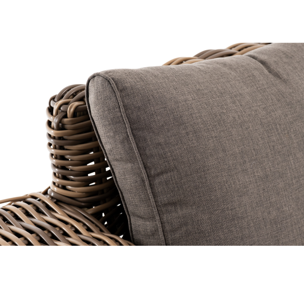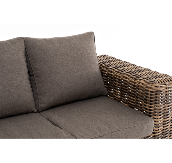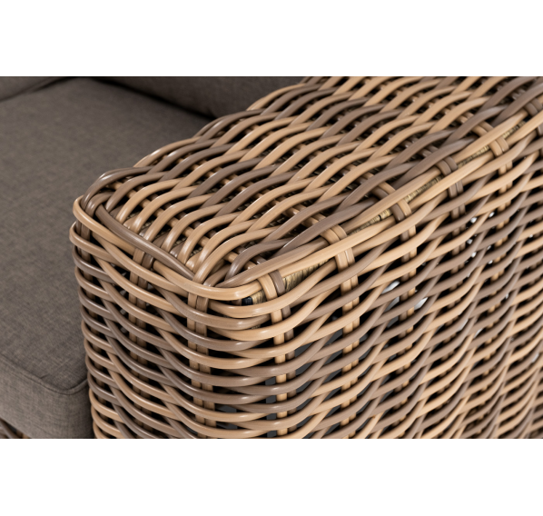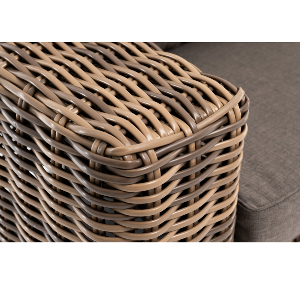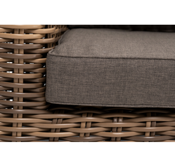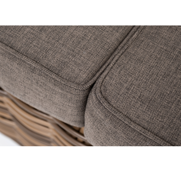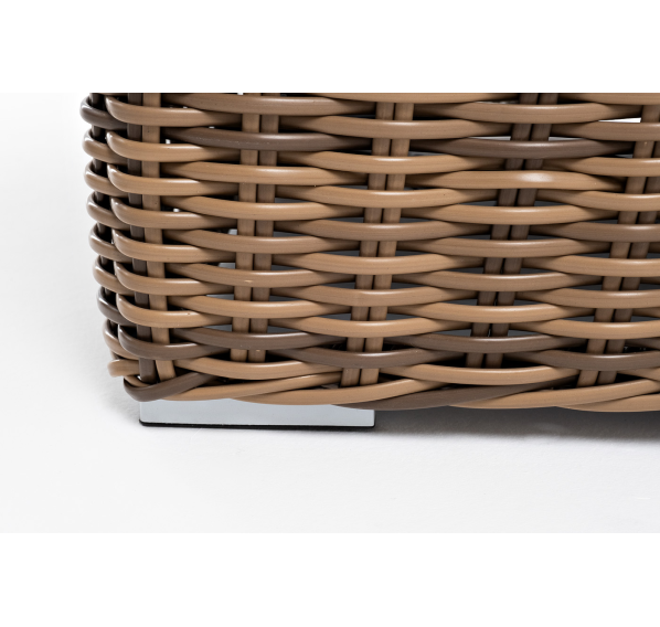 Ручное круглое плетение является основным декоративным элементом мебели. Оно выполнено из искусственного ротанга в соломенном цвете.