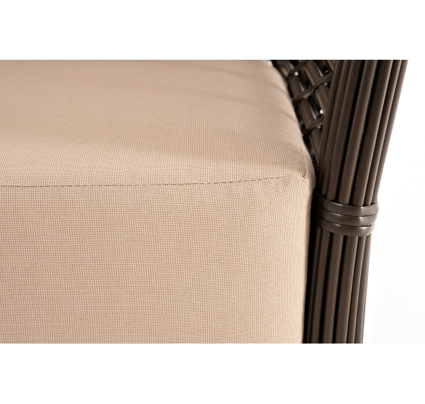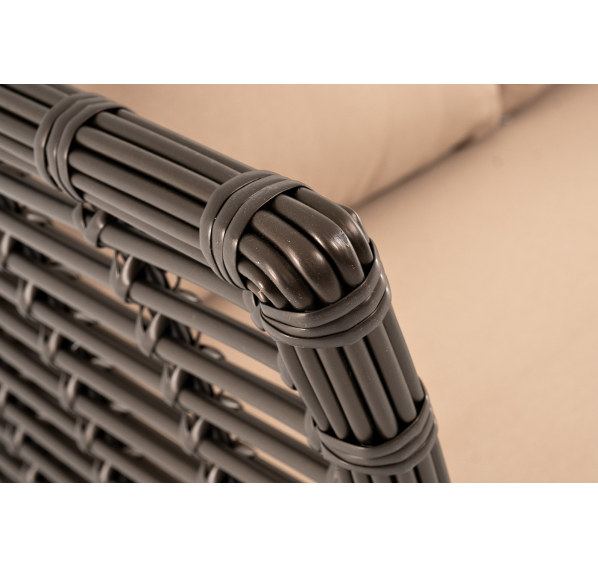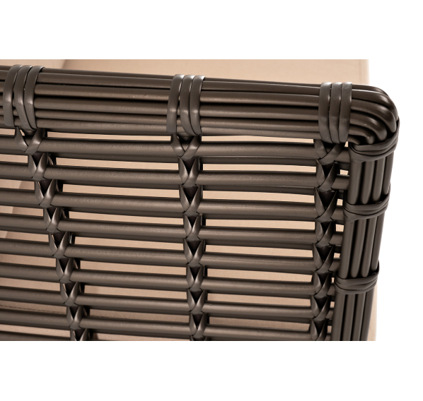 Ручное круглое плетение является основным декоративным элементом мебели. Оно выполнено из искусственного ротанга в бронзовом цвете.