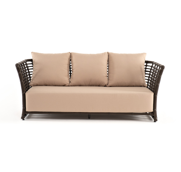 Диван «Валенсия» подходит для размещения сразу трех персон. Его основа из прочного алюминиевого каркаса.