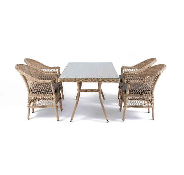 Обеденная группа «Амароне» относится к числу садовой мебели для обустройства открытых террас и веранд.