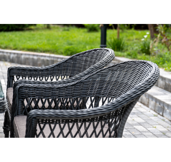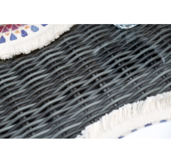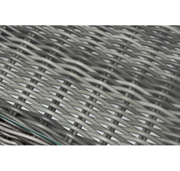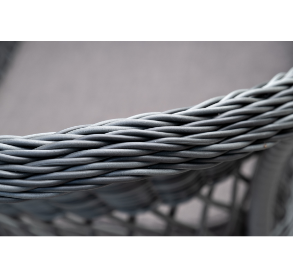 Алюминий используется при создании прочного каркаса мебели. Оформлен ручным плетением из круглого искусственного ротанга графитового цвета.
