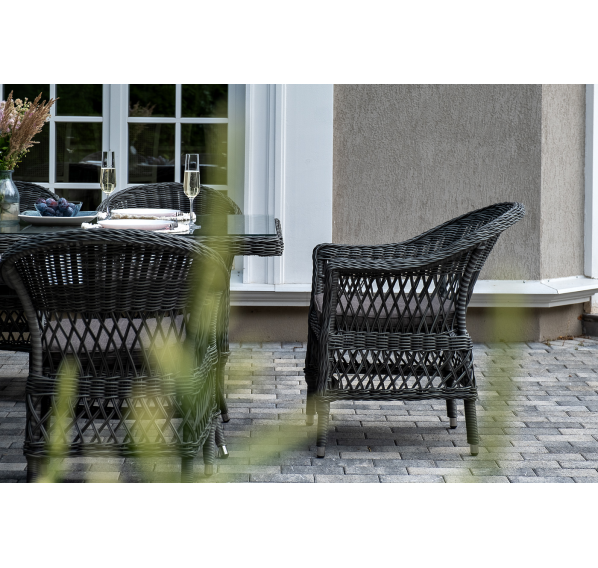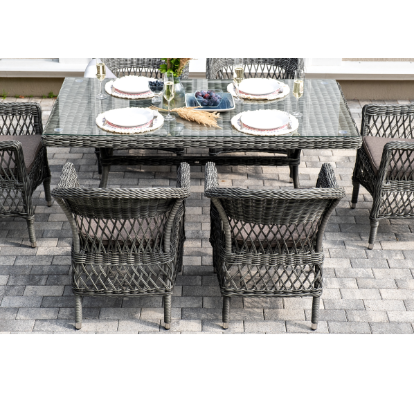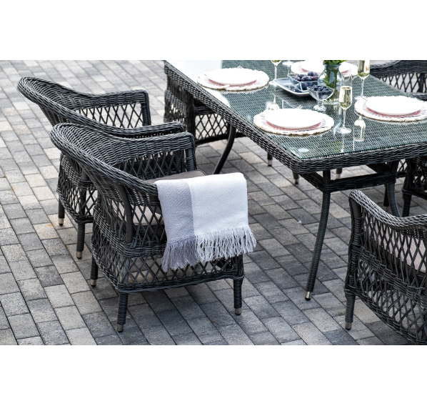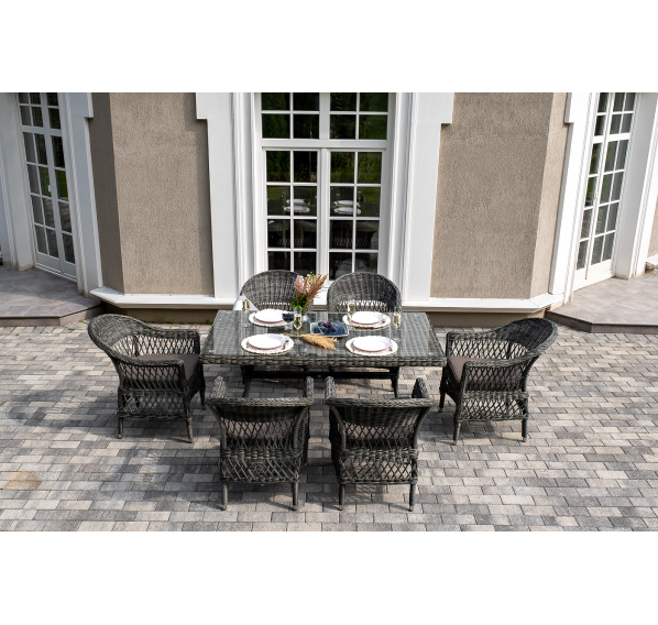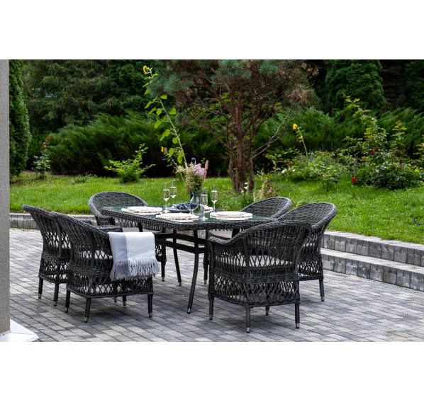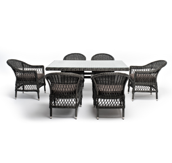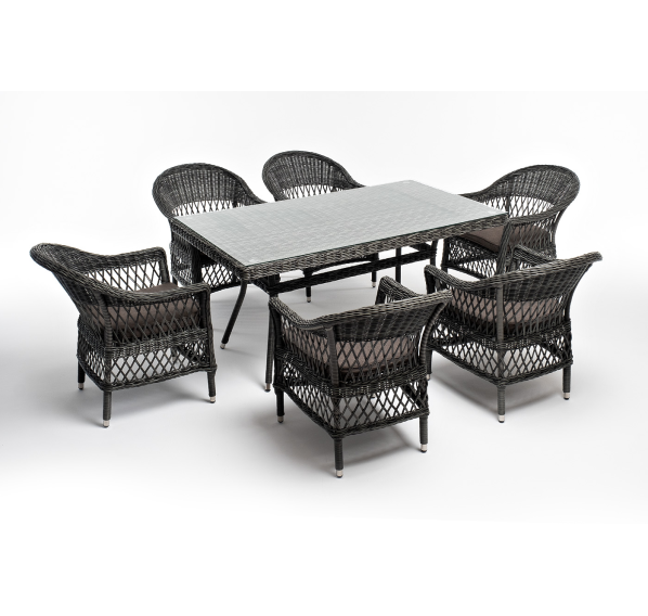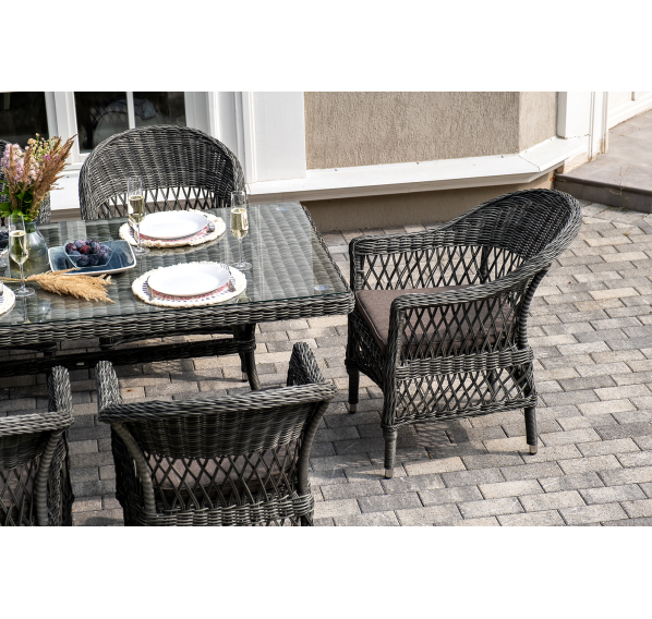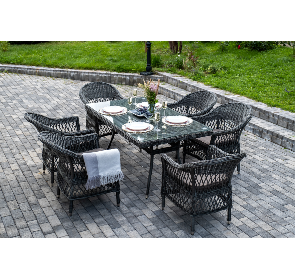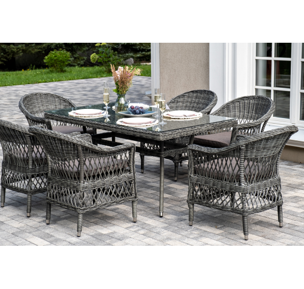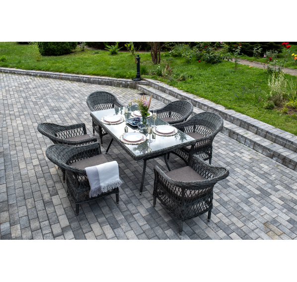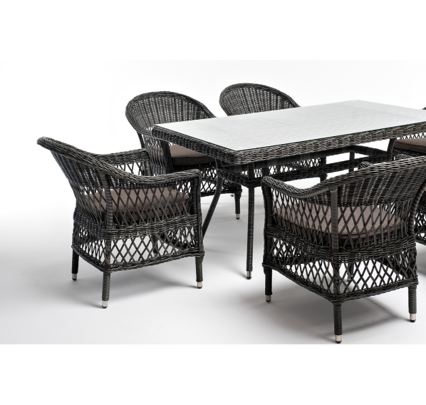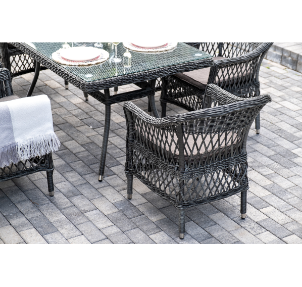 Обеденная группа «Амароне» относится к числу садовой мебели для обустройства открытых террас и веранд.