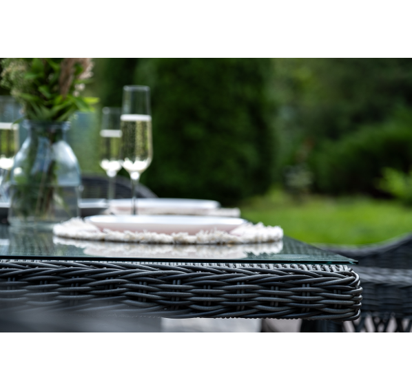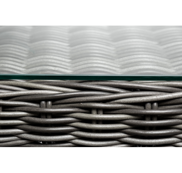 В качестве рабочей поверхности плетеного обеденного стола выступает стеклянная столешница, которая крепится при помощи вакуумных силиконовых держателей и поставляется в собранном виде.