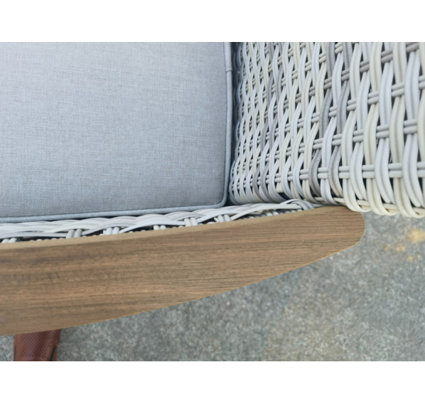 Каждое кресло оснащено поливудом(искусственное дерево) на подлокотниках, столешница выполнена из того же материала, что придает изысканный вид и обеспечивает дополнительный комфорт.