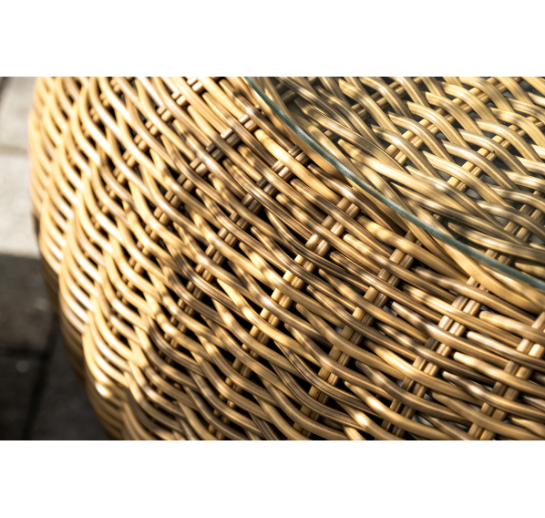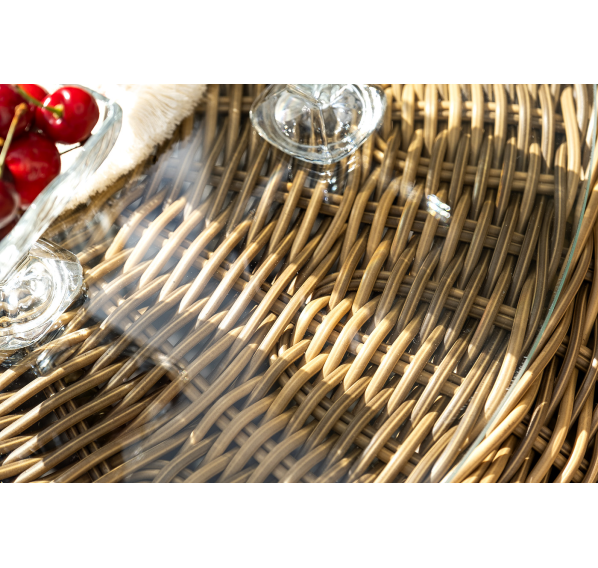 Поверхность плетеного столика представляет столешница из закаленного стекла – 5 мм.