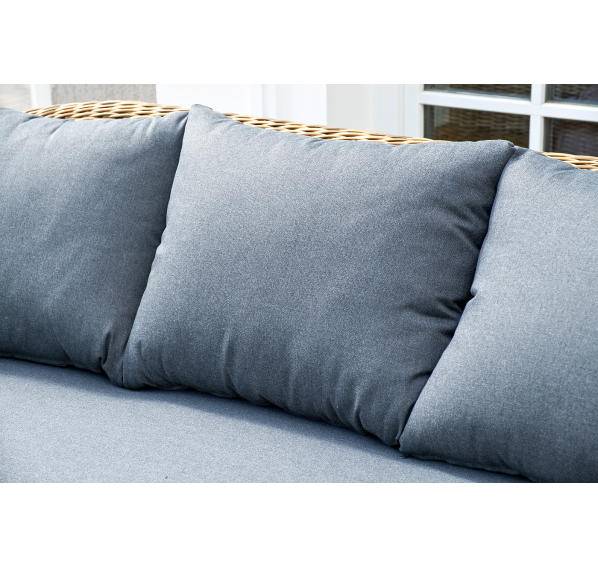На креслах и диване предусмотрены мягкие подушки, съёмные чехлы которых пошиты из полиэстера, плотностью 300гр/м2. Ткань в обязательном порядке пропитывается влагоотталкивающими составами.