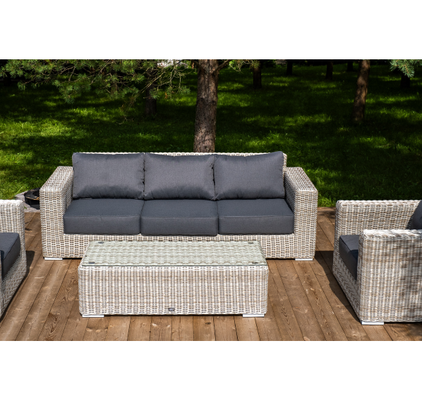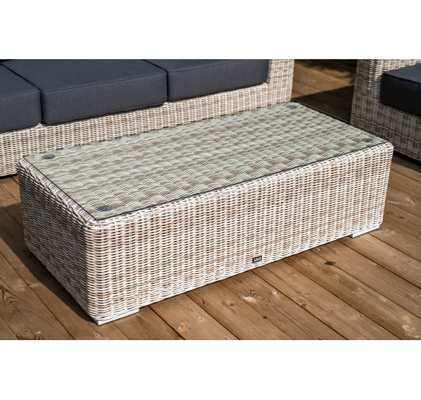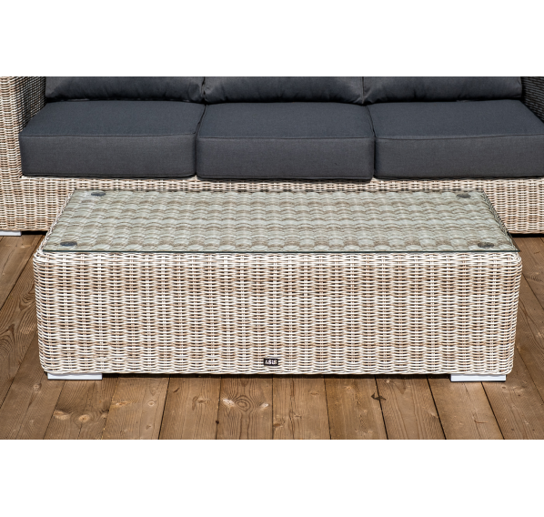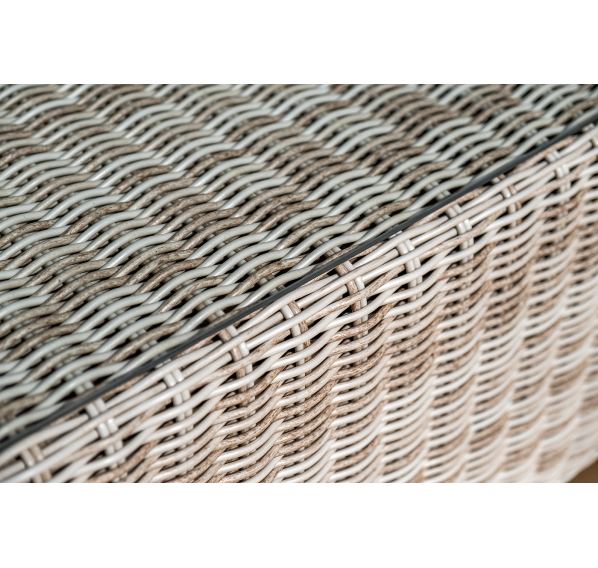 Поверхность плетеного столика представляет столешница из закаленного стекла – 5 мм.