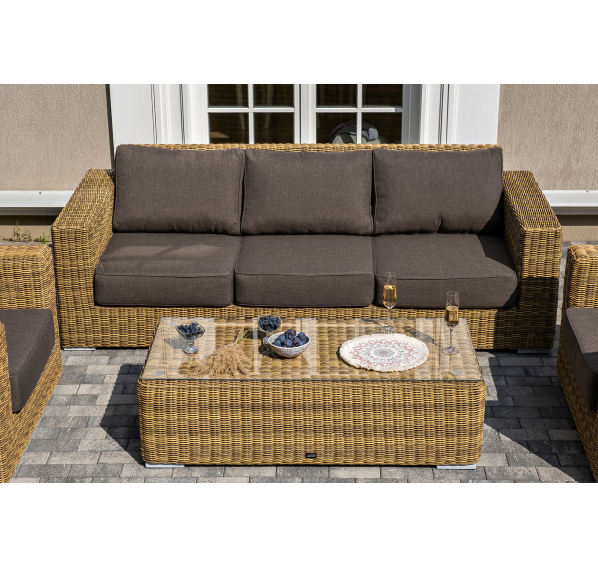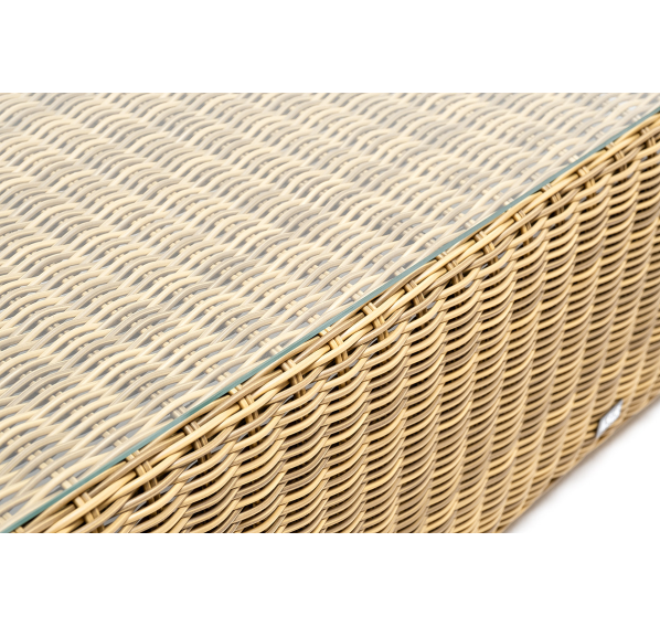 Поверхность плетеного столика представляет столешница из закаленного стекла – 5 мм.