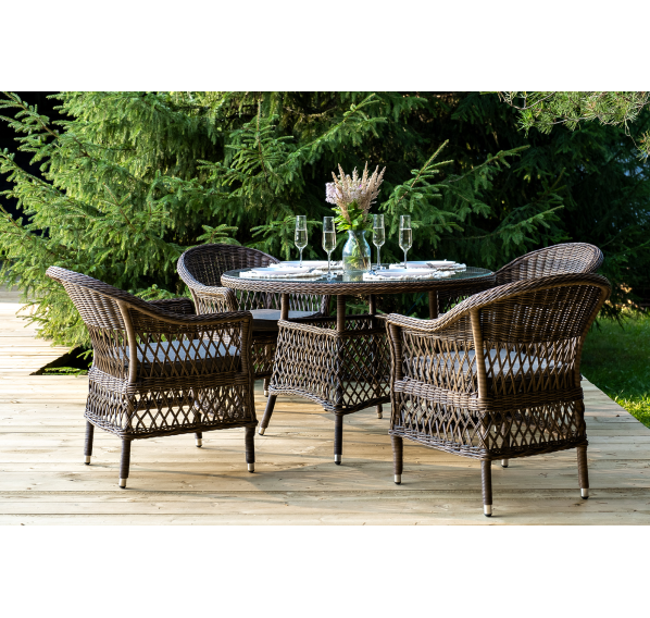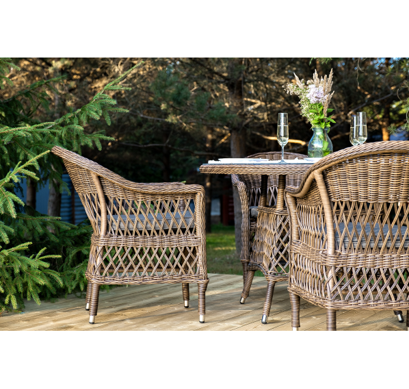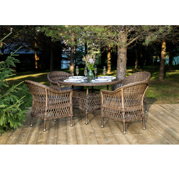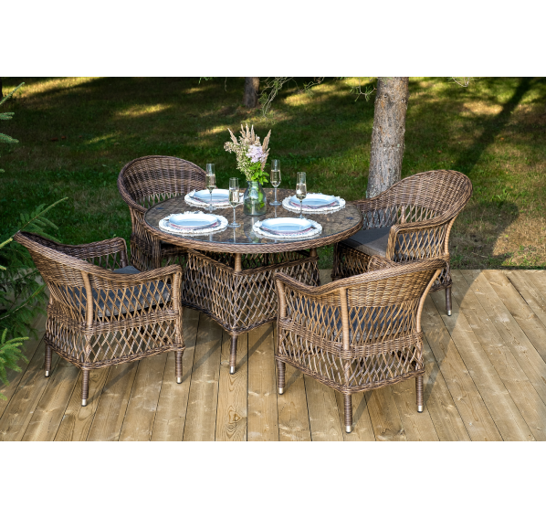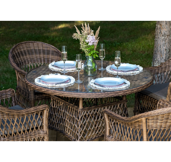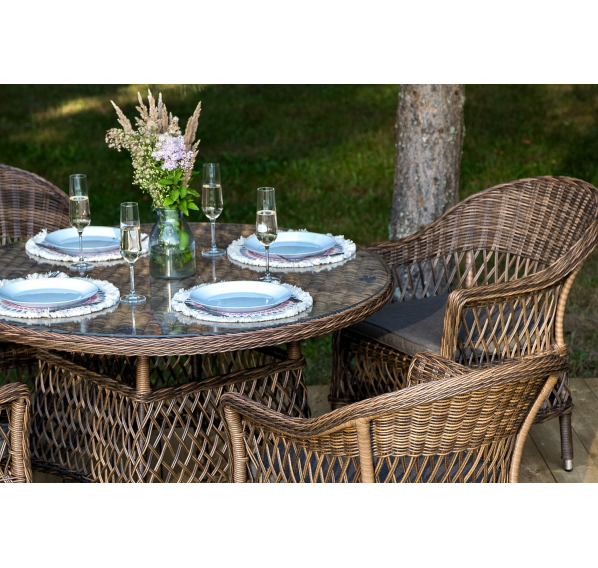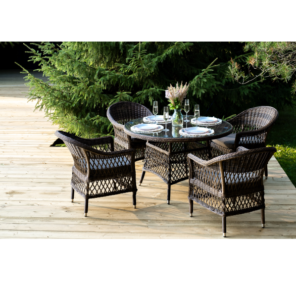 Обеденная группа «Дольче» дает возможность обустроить обеденную зону на открытом дачном участке, веранде или беседке.