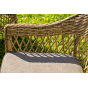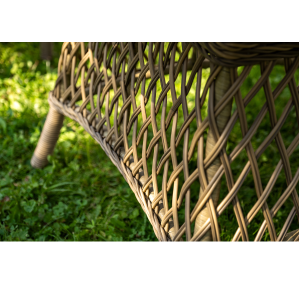 Из алюминия выполнен устойчивый каркас мебели, который задекорирован искусственным ротангом круглого ручного плетения. Комплект представлен в соломенном цвете.