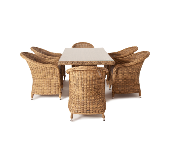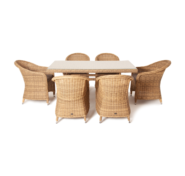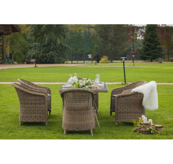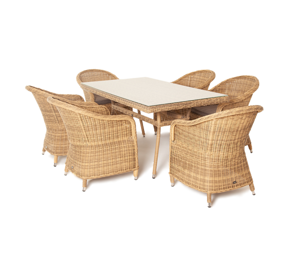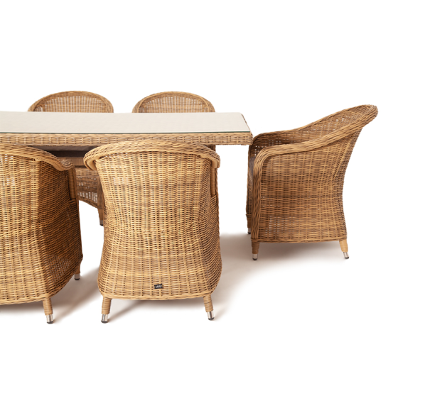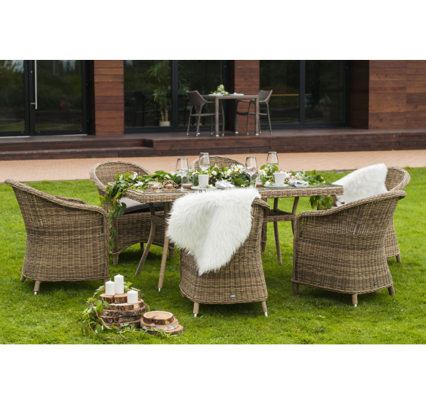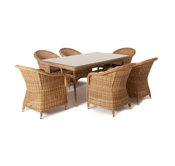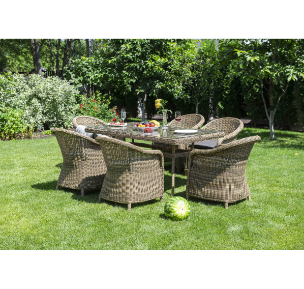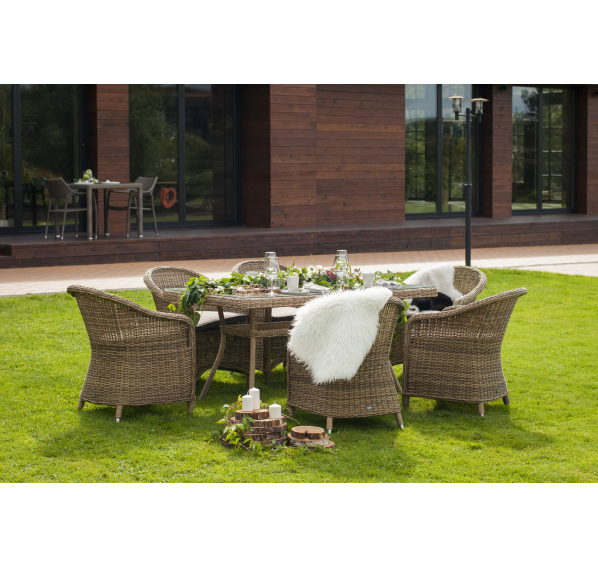 Садовая обеденная группа «Эспрессо» для шестерых персон натурального соломенного цвета.
