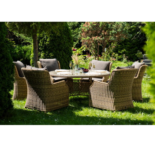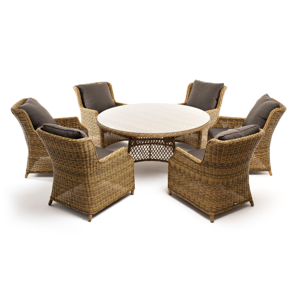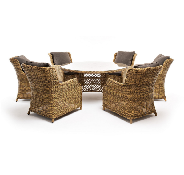 Обеденная группа на 6 персон «Эспрессо» из ротанга. В комплекте: большой круглый обеденный стол (1500×1500×750 мм.) и 6 кресел коллекции «Неаполь» (650×900×920 мм).