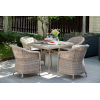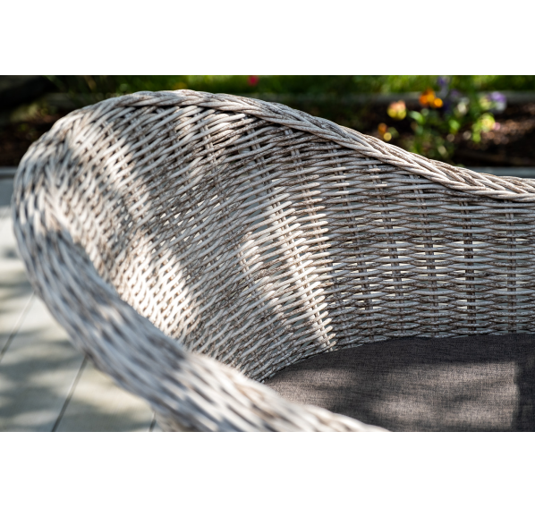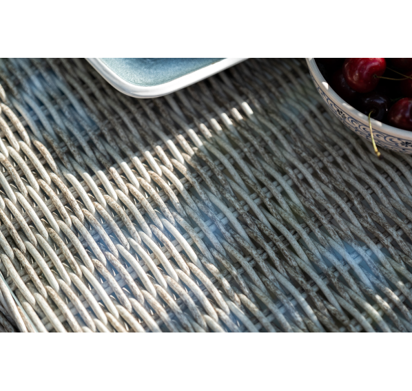 Обеденная группа идеальна для обустройства лаунж-зоны на открытом пространстве поскольку устойчива к перепадам погоды и атмосферным осадкам.