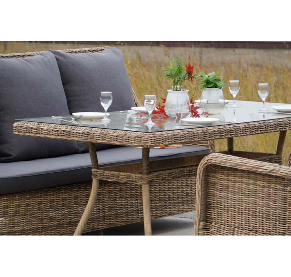Столешница обеденного стола изготовлена из высокопрочного закаленного стекла, которое по стандартам используется в пищевой промышленности.