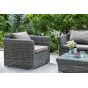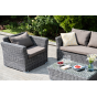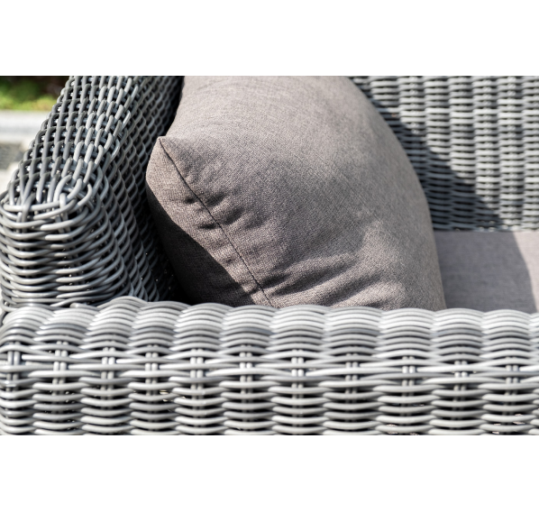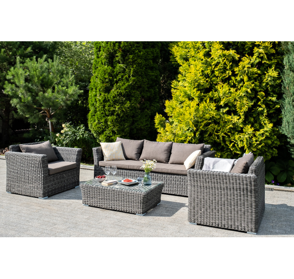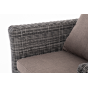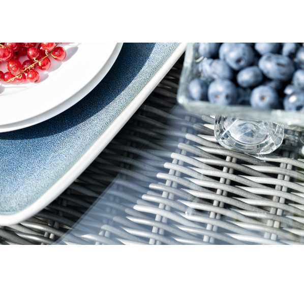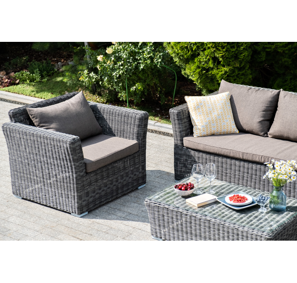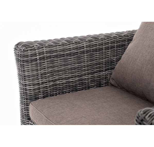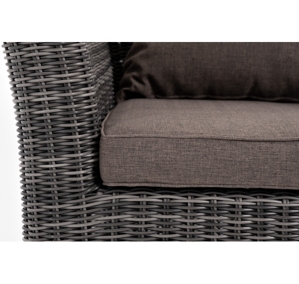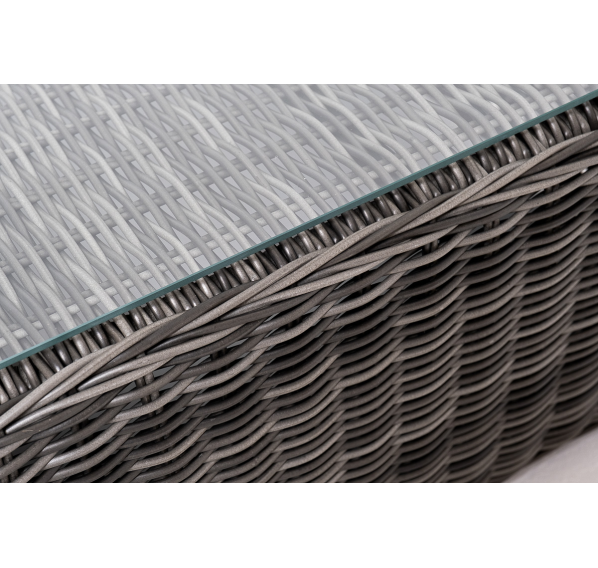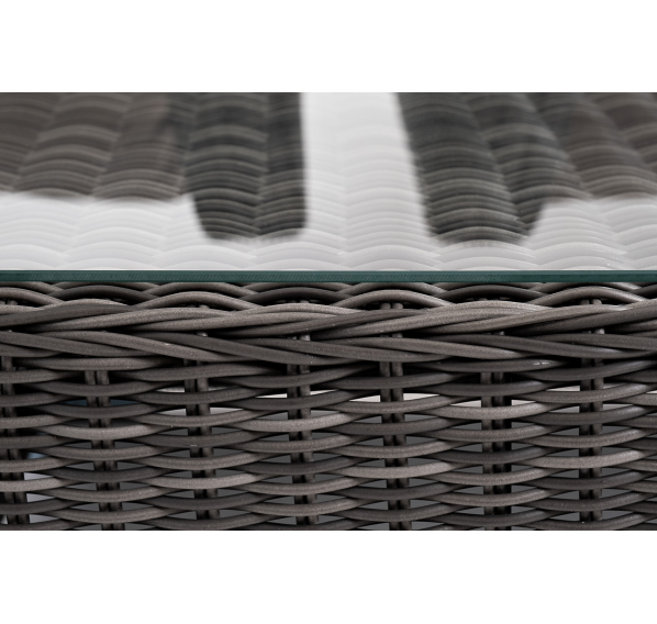 Из алюминия сделан устойчивый каркас мебели. Ее поверхность дополнена искусственным ротангом, из которого сделано ручное плетение, цвет "графит".