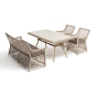 Обеденная группа выполнена в бежевом цвете. Комплект дополнит любой экстерьер в классическом стиле.