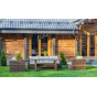 Диван имеет размеры 204х84х66 см, а кресла — 85х84х66 см. Обеденный стол с закаленным стеклом на столешнице имеет размеры 165х90х69 см, что позволяет удобно разместить до шести человек.