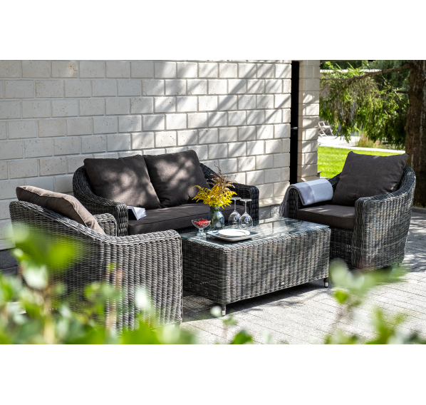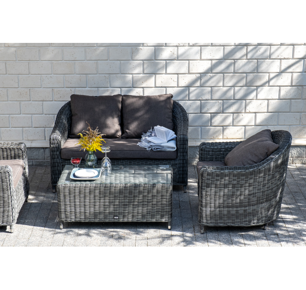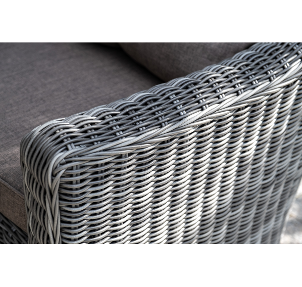 В основе мебели - алюминиевый каркас и круглый искусственный ротанг. Каркас оплетен с помощью ручного метода и представлен в графитовом цвете.