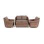 Диван и кресла укомплектованы удобными подушками в серых чехлах. Они пошиты из материала с влагоотталкивающей пропиткой – полиэстера, плотностью 300гр/м2. Чехлы съёмные, их можно стирать в стиральной машине.