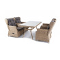 Обеденная группа из искусственного ротанга: 4 раскладывающихся кресла и обеденный стол со стеклянной столешницей.